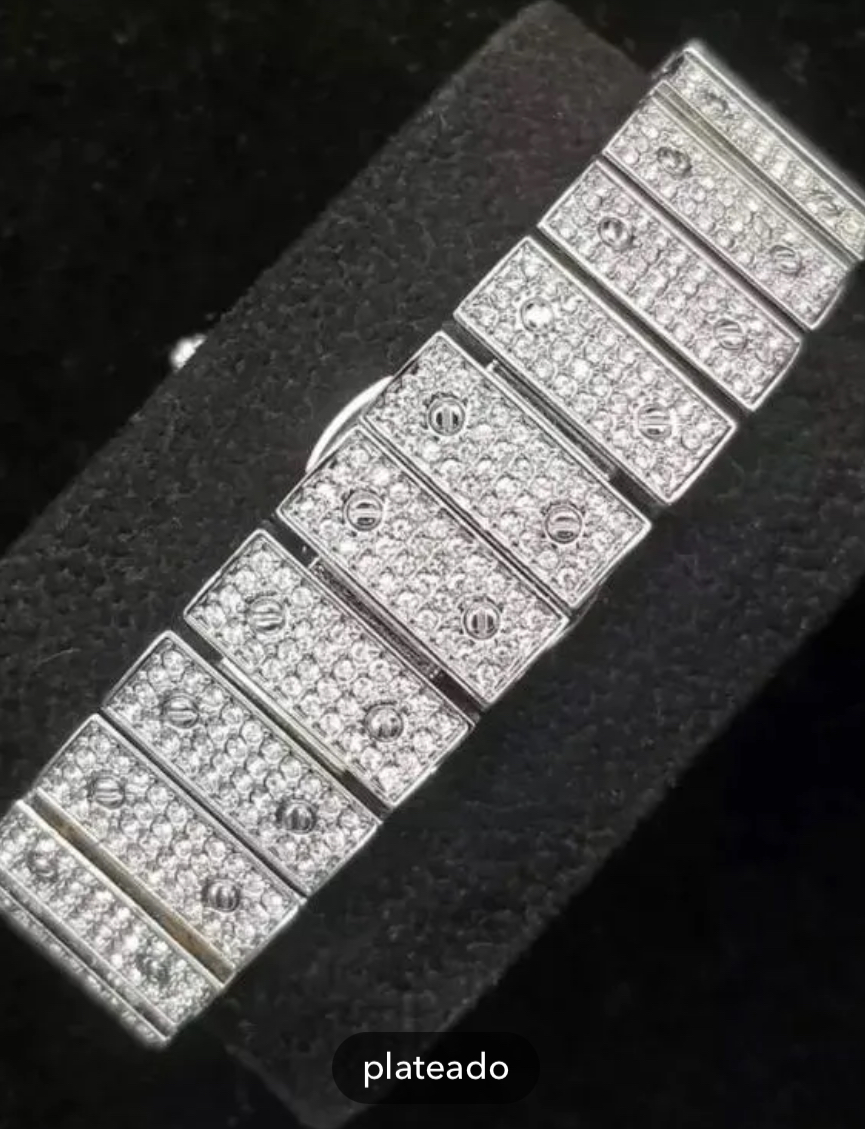 Reloj cuadrado clásico de lujo para hombre y mujer. Cronógrafo de cuarzo de alta calidad. Con diamantes de imitación.