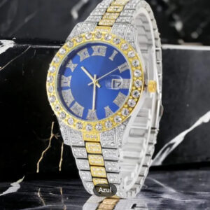 Reloj de hombre y mujer de lujo. Reloj de cuarzo, acero inoxidable con adornos de diamantes de imitación.