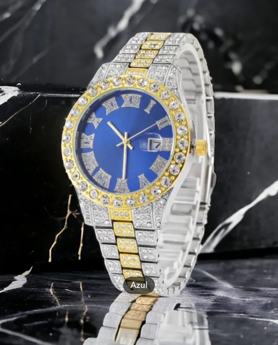 Reloj diamantes dorados esfera cuadrada (copia)