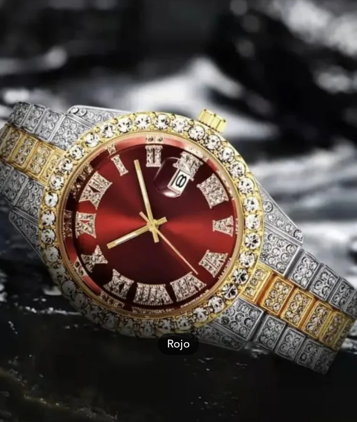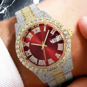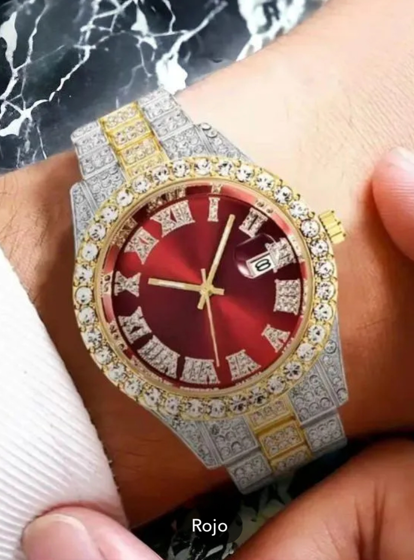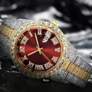 Reloj de hombre y mujer de lujo. Reloj de cuarzo, acero inoxidable con adornos de diamantes de imitación.