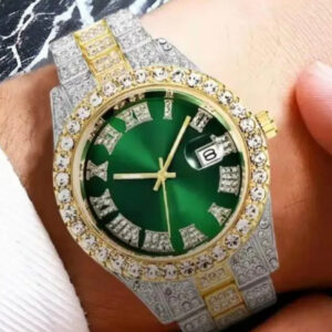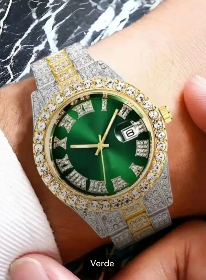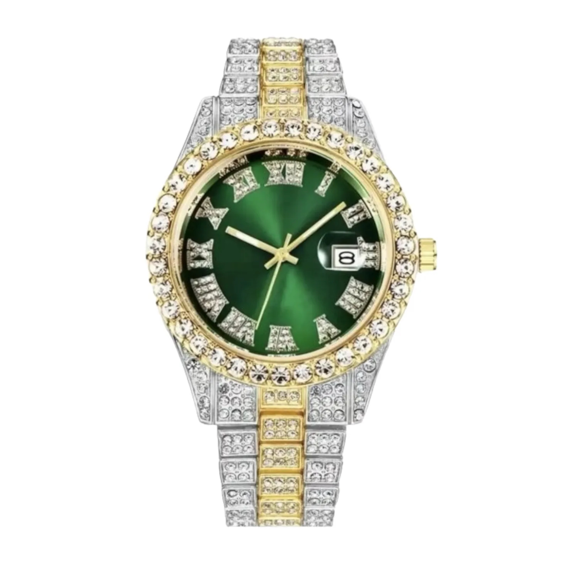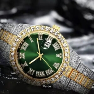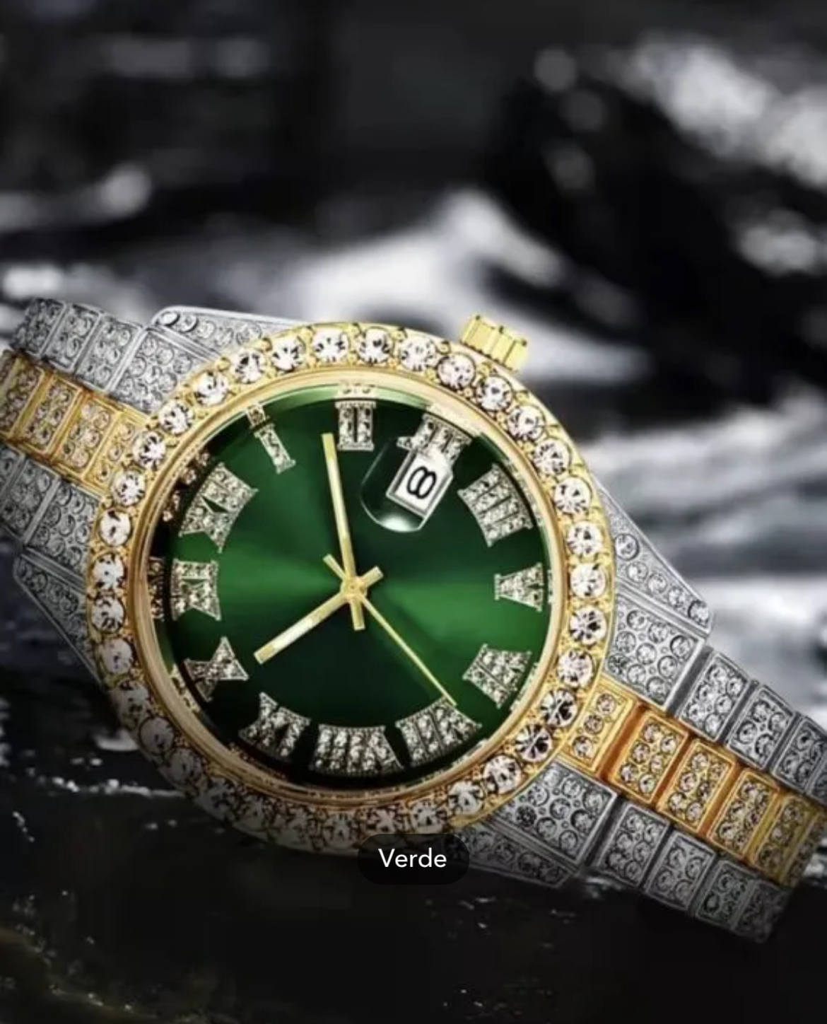 Diseño de lujo color dorado-plateado esfera dial verde.