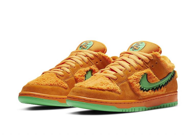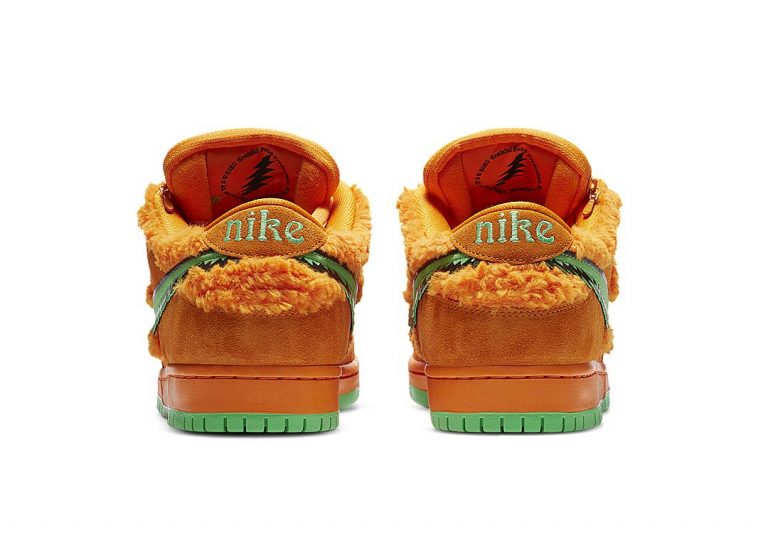 The Grateful Dead son mundialmente conocidos por su música psicodélica e iconografía, en especial la de dos diseños en concreto: la calavera de la portada del álbum “Steal Your Face” y el colorido coro de osos bailarines (también conocidos como “Marching Bears”, “osos desfilando” en su traducción al español). Esta singular edición del Dunk Low usa este último ícono como su principal inspiración, con revestimientos de piel sintética y gamuza suave que cubren casi toda la parte superior del calzado.