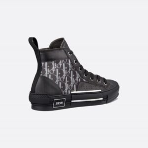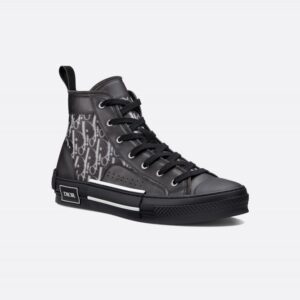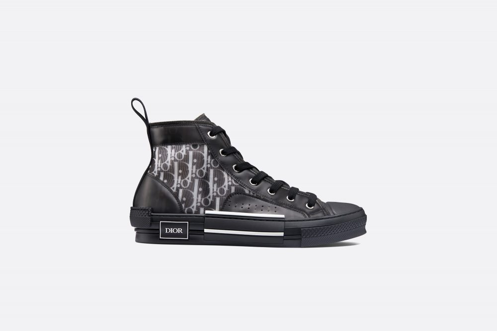La sneaker de caña alta B23 se distingue por el motivo Dior Oblique en blanco y negro y los paneles transparentes. Detalles básicos como los ojales y los cordones en la parte delantera, la suela de goma blanca y beige, la puntera redondeada y reforzada y el tirador trasero recuerdan al clásico modelo de caña alta. La pieza se ha realzado además con detalles en contraste en los laterales, que incluyen una firma “DIOR”, y combina a la perfección con cualquier conjunto casual.
