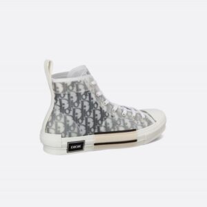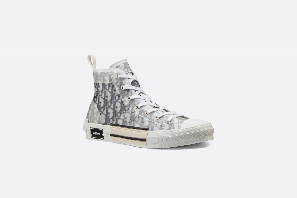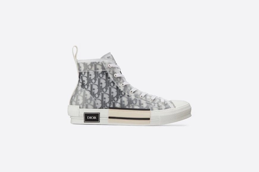 La sneaker de caña alta B23 se distingue por el motivo Dior Oblique en blanco y negro y los paneles transparentes. Detalles básicos como los ojales y los cordones en la parte delantera, la suela de goma blanca y beige, la puntera redondeada y reforzada y el tirador trasero recuerdan al clásico modelo de caña alta. La pieza se ha realzado además con detalles en contraste en los laterales, que incluyen una firma “DIOR”, y combina a la perfección con cualquier conjunto casual.